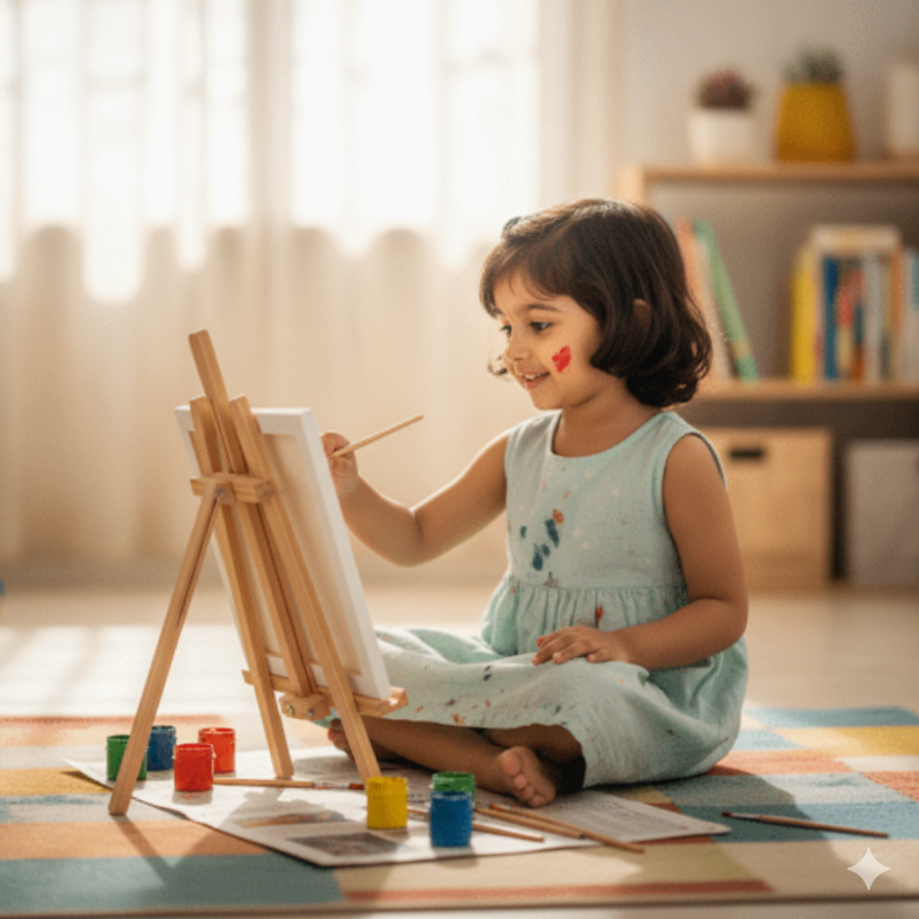 Art activities encourage imagination, self-expression, and creativity. From finger painting to simple crafts, children explore colors, shapes, and textures while developing fine motor skills.